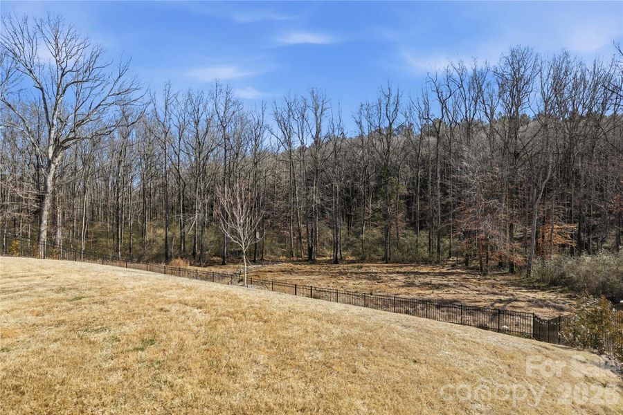 Just 15 months young and truly better than new, this home feels like stepping into a model—elevated finishes, thoughtful design, and pride of ownership throughout. This home features stunning views with exterior upgrades you’ll love. Set on a .27-acre homesite backing to preserved woods, you’ll enjoy no rear neighbors and no future construction—just a peaceful tree view and the kind of privacy that’s hard to find. Enjoy dining al fresco on your screened porch, and soak in the glow of the moon lounging on your stamped concrete patio in the evenings. Your fully fenced backyard flocked by 30+ evergreens and crepe Myrtle’s will enhance the setting’s natural beauty as they continue to grow and establish.