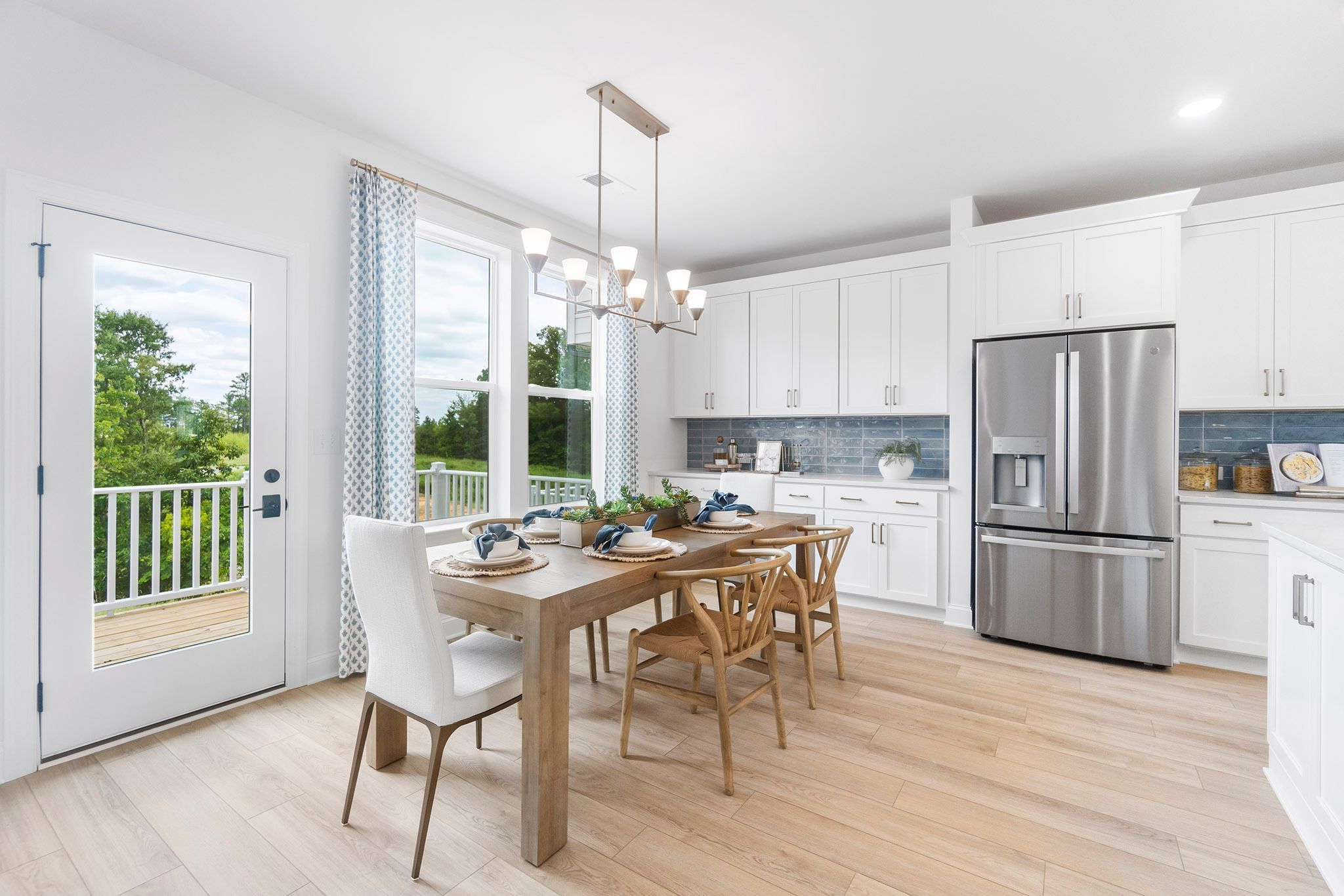 Finley Right Entry (2002 sq. ft.) is a townhome with 4 bedrooms, 3 bathrooms and 2-car garage. Features include master bed downstairs.
