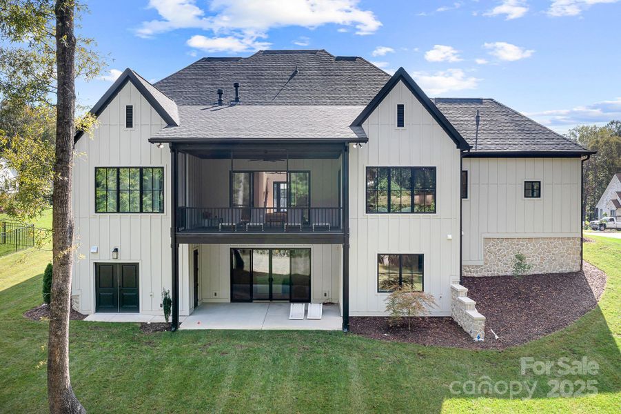 Main Features include an Open Concept Floor Plan with abundant natural light, Gorgeous White Oak Flooring on the main level & elegant tile throughout, Striking Stone Fireplace anchors the spacious family room, Chef’s Kitchen with 9' quartz island, 48" Monogram gas cooktop with double oven, Stunning custom cabinetry, Stainless steel appliances, Expansive walk-in Scullery (secondary prep kitchen), 12x12 Room on Main—perfect as a home office, den, or guest space. Primary Suite on Main featuring spa-like bath with soaking tub, oversized walk-in shower, separate vanities, and towel warmer. Huge walk-in closet. Upstairs there are three spacious bedrooms, two full bathrooms for added privacy and convenience. Finished Basement has 10' Ceilings, cozy Gas Fireplace, Large Family Area, Bar Area, Rec Room, and Flex Space, full bathroom and generous Mechanical/Storage Room. Outdoor Living has a private, wooded backyard, Half bath off the patio—ideal for your future pool. Low HOA dues and low Iredell County taxes.