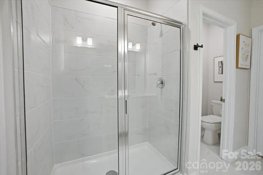 From the moment you step inside, the attention to detail is unmistakable. Crown moulding frames the open living spaces, where luxury vinyl plank flooring flows seamlessly into a showstopping kitchen featuring 42" white cabinetry, calcatta lazza quartz countertops, a herringbone tile backsplash, and a full suite of stainless steel appliances including a gas range. The flat-top island overlooks a generous great room anchored by a cozy gas log fireplace — ideal for entertaining or quiet evenings at home.