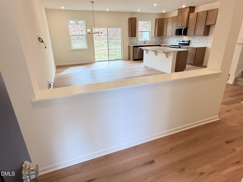 Spacious and light-filled 3-bedroom, 2.5-bath two-story townhome with a 2-car garage and open floor plan, located in a desirable community with a pool. The stunning kitchen features 9-foot ceilings, a large island with Quartz countertops, luxury vinyl plank flooring, Whirlpool® stainless steel appliances, Aristokraft cabinets, and Moen faucets. The generous owner's suite offers a dual sink vanity, walk-in shower, elongated toilet, and Moen fixtures. Designed for energy efficiency, this ENERGY STAR certified home is equipped with Ecobee smart thermostats for optimal comfort. Enjoy the privacy of a beautiful wood-view homesite.