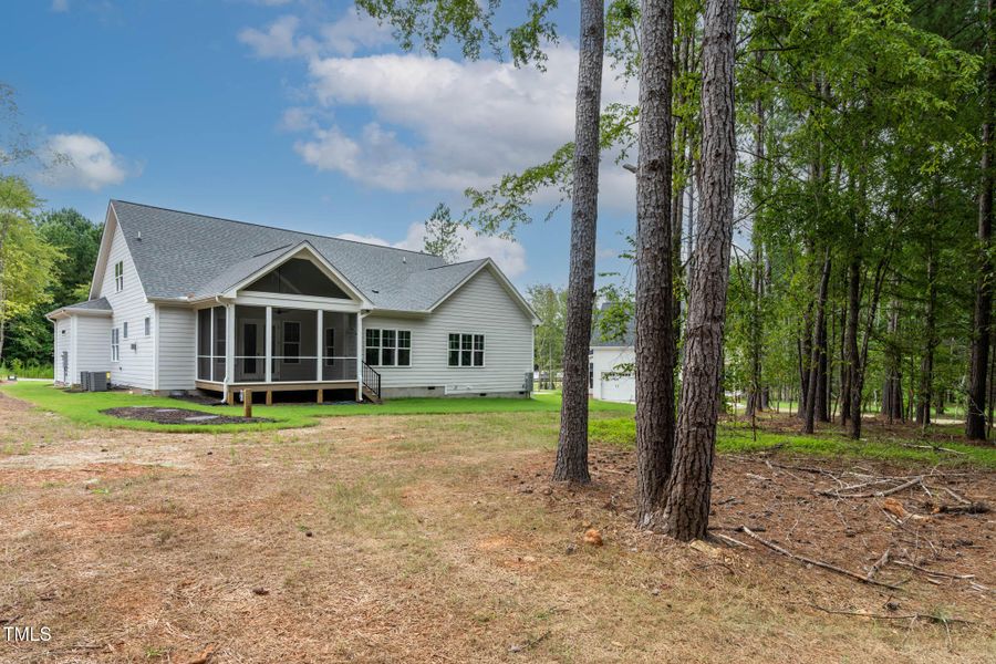 Welcome to The Lenny, an award-winning floor plan by MB Homes Construction—recipient of multiple Gold Parade of Homes honors—situated in the sought-after Cedar Knolls community of Youngsville. This thoughtfully designed home offers elegant, primarily first-floor living with an open-concept layout. Featuring luxury vinyl plank flooring, decorative trim accents in the dining and family rooms, with espresso-stained beams that complement the staircase and handrails. The family room features built-in cabinetry flanking a central fireplace, blending functionality with sophisticated charm. The gourmet kitchen showcases quartz countertops, a distinctive tri-color ''Songbird'' tile backsplash, wall oven/microwave unit, and range with natural gas connection. A tankless hot water heater provides added comfort and energy efficiency. The main-level primary suite includes dual walk-in closets, a freestanding soaking tub with wainscot tile detailing, a zero entry tile shower, and quartz-topped vanities. Two additional bedrooms and a full bath complete the main floor, along with a well-appointed laundry room featuring Agoura Series Briar Oak tile, built-in cabinetry, and a spacious folding counter. Upstairs, you'll find a generous game room, a fourth bedroom, an additional full bath, and unfinished storage space. Enjoy serene views from the covered back porch overlooking a wooded lot. Residents of Cedar Knolls also enjoy access to 24 acres of preserved open space, highlighted by a scenic, meandering creek.