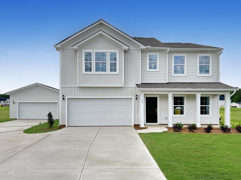 This popular Russell plan offers the perfect blend of comfort, style, and functionality. With a highly sought-after 2-car detached garage in addition to the attached 2-car garage, this home is a dream come true for car enthusiasts or anyone needing extra storage space, totaling a 4-car capacity! Inside, you'll find 4 bedrooms and 3 full baths, including a guest bedroom with a full bath with a 5' shower on the main floor, ideal for visitors or multigenerational living. The open-concept eat-in kitchen is a chef's dream, featuring cabinets with crown molding, a large island with bar seating and quartz countertops, a walk-in pantry, and a cozy breakfast nook. The kitchen flows seamlessly into the spacious family room, filled with natural light and offering easy access to a 10' x 12' patio, perfect for outdoor entertaining. Upstairs, the luxurious primary suite boasts a tray ceiling, a spa-like bath with dual sinks, a tiled shower, water closet, linen closet, and two generous walk-in closets. Two additional bedrooms—each with their own walk-in closet, share a full bathroom. A laundry room and a large loft space complete the second floor, offering even more room to relax or entertain. Located just 10 minutes from downtown Angier, you'll enjoy charming local shops and restaurants with quick access to Raleigh and Interstates 40 and 95 for easy commuting. **ETA SEPT! Photos are for Representation! ASK ABOUT OUR INCENTIVES!