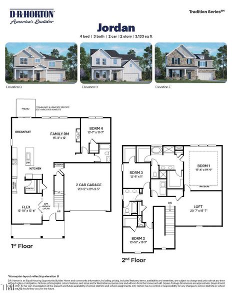 The Jordan is one of our brand new two-story floorplans featured at The Manors at Swift Creek Farm in Clayton, NC. This home showcases 3 modern elevations and boast an impressive level of comfort, luxury, and style. The Jordan features 4 bedrooms, 3 bathrooms, 3,133 sq. ft. of living space, and a 2-car garage.