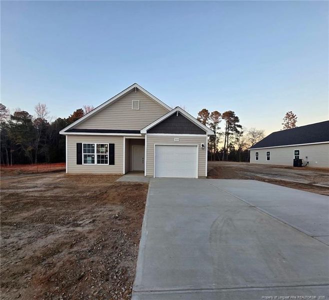 Receive $10,000 in buyer incentives when you use the builder’s preferred lender. Plus Fridge & Blinds on contracts received by Dec 31, 2025. You'll love the Davie, this thoughtfully designed ranch-style home offers easy one-level living with smart features and flexible spaces for everyday comfort. A welcoming entryway with a coat closet opens into a spacious great room, perfect for gathering and relaxing. The kitchen blends style and function with shaker cabinets, granite countertops, stainless steel appliances, a center island with sink, and a pantry, all flowing seamlessly into the dining area with backyard views and access to a covered porch and grill patio—perfect for indoor-outdoor living. The private primary suite provides a peaceful retreat with an en-suite bath featuring dual sink vanity, walk-in shower, linen closet, and walk-in closet. Two additional bedrooms share a full hall bath, perfect for guests or family. A separate laundry room with washer/dryer connections and a linen closet adds convenience. Exterior highlights include low-maintenance vinyl siding, dimensional roof shingles, smart keypad entry, and a 1-car garage. Additional features include fiber optic internet availability, Energy Plus certification, and a 1-2-10 builder in-house warranty. Duck's Landing is a charming community with spacious lots in the peaceful countryside of Lillington, NC, featuring planned amenities like a tot lot, dog park, and picnic area, all with convenient access to Lillington, Fort Bragg(20 min.), Raleigh, and Fayetteville.