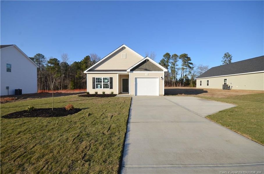 This incentive won't last long - $10,000 builder incentive ($0 closing costs) with First Point OR rate as low as 2.99.You'll love the Davie, this thoughtfully designed ranch-style home offers easy one-level living with smart features and flexible spaces for everyday comfort. A welcoming entryway with a coat closet opens into a spacious great room, perfect for gathering and relaxing. The kitchen blends style and function with shaker cabinets, granite countertops, stainless steel appliances, a center island with sink, and a pantry, all flowing seamlessly into the dining area with backyard views and access to a covered porch and grill patio—perfect for indoor-outdoor living. The private primary suite provides a peaceful retreat with an en-suite bath featuring dual sink vanity, walk-in shower, linen closet, and walk-in closet. Two additional bedrooms share a full hall bath, perfect for guests or family. A separate laundry room with washer/dryer connections and a linen closet adds convenience. Exterior highlights include low-maintenance vinyl siding, dimensional roof shingles, smart keypad entry, and a 1-car garage. Additional features include fiber optic internet availability, Energy Plus certification, and a 1-2-10 builder in-house warranty. Duck's Landing is a charming community with spacious lots in the peaceful countryside of Lillington, NC, featuring planned amenities like a tot lot, dog park, and picnic area, all with convenient access to Lillington, Fort Bragg(20 min.), Raleigh, and Fayetteville.