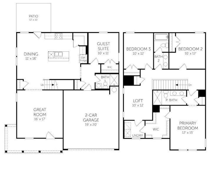 The Hargrove floor plan is a thoughtfully designed two-story single-family home offering approximately 2,062 square feet of living space. This versatile layout features a two-car garage and a welcoming main floor that includes a spacious great room, dining area, and an optional gourmet kitchen—perfect for everyday living and entertaining. A guest suite with a full bath on the first floor provides added convenience. Upstairs, you'll find two additional bedrooms, a shared full bath, a versatile loft area, and a centrally located laundry space. The generous primary suite offers a private bath and a large walk-in closet for optimal storage. A rear patio comes standard, with an option to add a covered patio for enhanced outdoor enjoyment.Photos are for illustration purposes only. Actual home may vary in features, colors, and options.