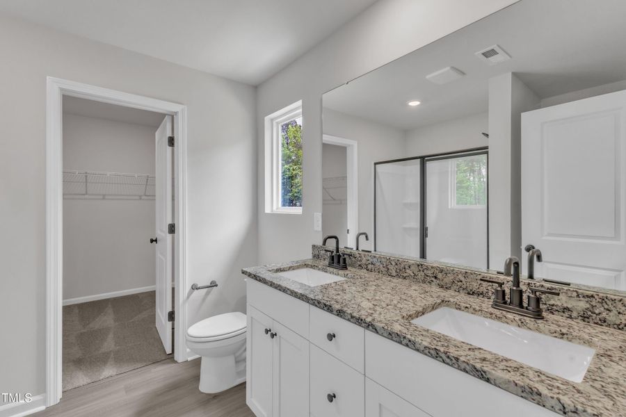 This 4-bed home Located on a beautiful corner lot has a spacious and airy feel that has been designed with your needs in mind. The large kitchen is open to the dining area and living room and has stainless steel appliances, gorgeous granite countertops, 36'' upper cabinets with brushed nickel hardware and a large island. The master is tucked away on the second floor of the home with plenty of natural light and a fabulous master bath. In the master bath you will find a large vanity, great storage and an impressive walk-in closet.