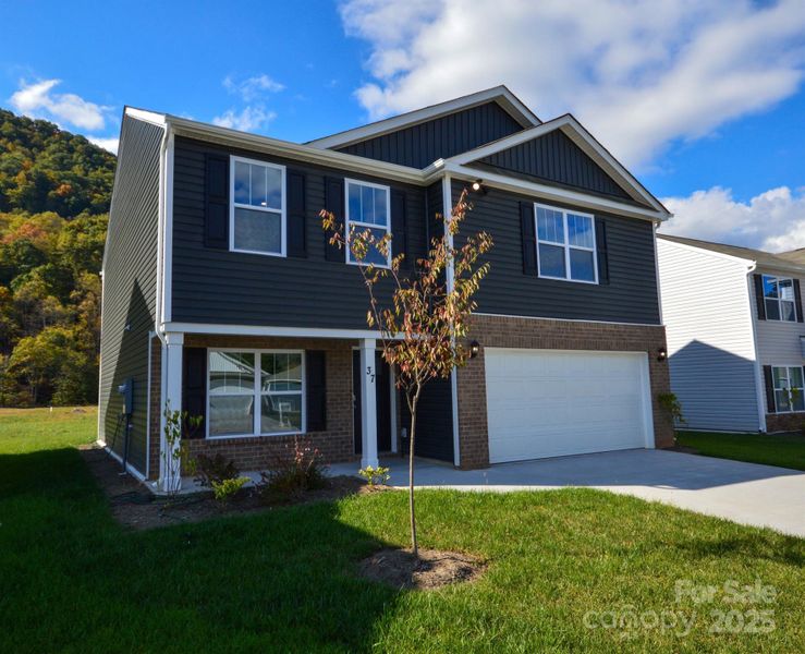 Wildbrook Village, a new community nestled just beyond the borders of Maggie Valley. Minutes from downtown Waynesville with a lively Main Street that has many local restaurants to choose from and charming stores for shopping. This popular floor plan features a flex space, as well as 3 bedrooms and a loft on the second floor. The kitchen welcomes you with a chef’s island, beautiful countertops and ss appliances. Primary bedroom is large enough to accommodate any furniture size or style and includes a generous walk-in closet. Bedrooms 2 and 3 are oversized, with walk-in closets of their own and offer plenty of space for everyone. Smart home package included. Home features are subject to change without notice. Internet service not included. Sq footages are approximate