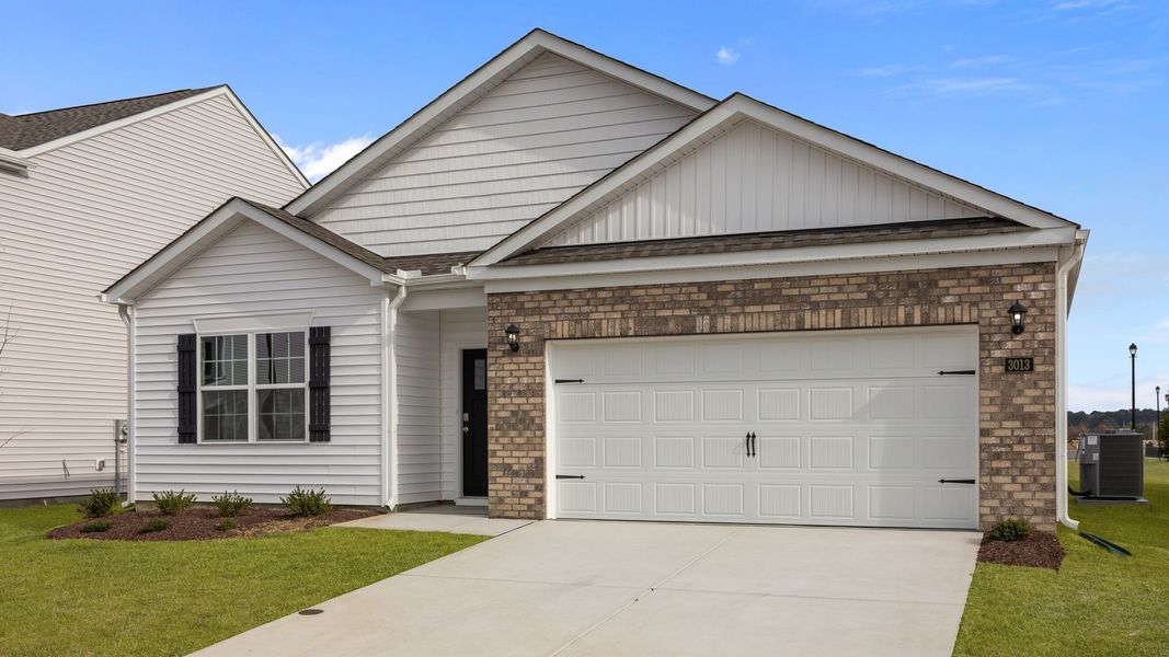 The Cali is a spacious and modern single-story home featured at Ridgewood Farms in Winterville, NC, offering 5 modern elevations, and designed with open-concept living in mind.