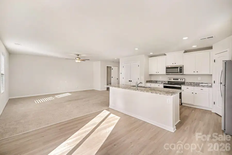 Tucked at the end of a quiet cul-de-sac in Pinnacle Estates, this 2023-built home combines modern efficiency with move-in-ready convenience. The open-concept main level features durable Luxury Vinyl Plank (LVP) flooring and an abundance of natural light. The centerpiece kitchen is equipped with granite countertops, a functional center island, and stainless steel appliances—perfect for meal prep and entertaining.
