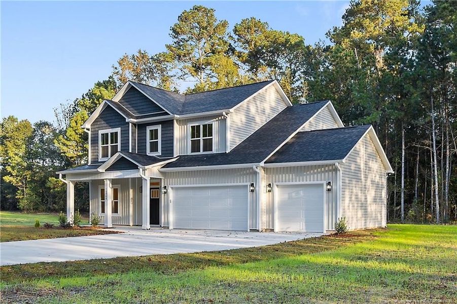 Welcome to The Grey Plan—a thoughtfully designed home nestled on a generous 1.49-acre lot in peaceful Linden. This beautifully crafted home features the ideal layout with the primary suite on the main level, three additional bedrooms and bonus room upstairs, providing comfort, privacy, and functionality for the whole family. The main level spacious primary suite is a true retreat, boasting a tiled walk-in shower, dual vanities, a private water closet, linen storage, and a gracious walk-in closet. The heart of the home is the open-concept kitchen, complete with granite countertops, stainless steel appliances, and a center island that flows effortlessly into the dining and family rooms—perfect for entertaining and everyday living. Just off the entry, you’ll find a versatile office or flex space—ideal for working from home, a hobby room, dining area, or a quiet study. Upstairs, an additional living area between the bedrooms creates the perfect spot for a reading nook, playroom, or gaming lounge, all serviced by a full bathroom for added convenience. Enjoy your morning coffee or evening relaxation on the covered front and back porches while taking in the beauty of your expansive yard. Plenty of room to grow with a third car garage for extra storage! With no HOA, you’ll enjoy the freedom to truly make this home your own. Take advantage of a 1% lender credit on the loan amount when using preferred lender Christy Strickland with Atlantic Bay Mortgage (910-574-2105). Please note: Listing photos are from a previous build with the same floor plan and are for representation purposes only.