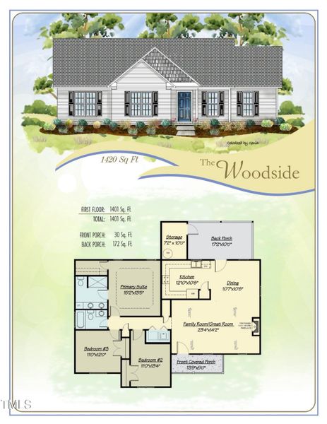 Welcome to the Woodside floor plan, a thoughtfully designed home offering 3 bedrooms, 2 full baths, and approximately 1,420 square feet of open concept living. Enjoy designer touches throughout, including custom trim around the electric fireplace in the spacious family room, upgraded light fixtures, tile backsplash, and cabinet hardware. The kitchen features solid surface countertops, stainless steel appliances, and a walk-in pantry, with a dining area just off the kitchen for everyday use. The primary suite includes a tray ceiling, walk-in closet, dual vanity, and a large walk-in shower. Secondary bedrooms are generously sized, and both the front and back porches are covered for outdoor enjoyment. Smart home features like a Ring doorbell, Alexa Show 8, and Ecobee thermostat add modern convenience. Located in Fremont with no HOA, this home offers a small-town setting with quick access to Goldsboro, Greenville, Wilson, and Raleigh.