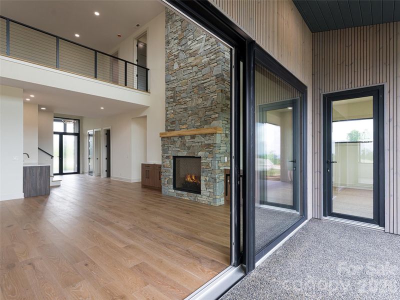 Located in Summit Vista, the newest luxury enclave within the gated Carriage Park community, this brand-new mountain-modern residence is perfectly positioned to capture panoramic, long-range layered mountain views from nearly every room and is further enhanced by a rare double lot that provides added privacy, extra breathing room, and ideal space for outdoor living. Designed for effortless lock-and-leave living, this refined single-family home is just 7 minutes from Historic Downtown Hendersonville and minutes from Asheville Regional Airport, offering both convenience and tranquility. Summit Vista features +/-6 acres of beautifully maintained community common space, extending outdoor living while preserving privacy, with homes thoughtfully sited to feel secluded yet naturally connected to neighbors and the greater Carriage Park community. The open-concept main level is anchored by a dramatic floor-to-ceiling stacked-stone fireplace and expansive 7’ x 14’ sliding glass doors that open to the terrace patio, creating a seamless indoor-outdoor flow ideal for entertaining or relaxing while taking in the views. The chef’s kitchen is both striking and highly functional, featuring Cristallo quartzite countertops and a full suite of Thermador appliances. The main-level primary suite offers a peaceful retreat with private patio access framed by sweeping mountain views and a luxurious bath, while the upper level provides exceptional flexibility with a second primary suite, guest suite, family room with wet bar, and laundry room. Built with durability and efficiency in mind, the home showcases thermally treated natural wood siding, stone accents, a standing-seam metal roof, and European Oknoplast high-performance windows and doors, along with hybrid insulation, two Navien tankless water heaters, and a two-car garage pre-wired for a generator and EV charging. Residents of Carriage Park enjoy 24-hour gated security, a clubhouse, heated indoor pool, tennis and pickleball courts, and scenic shared common spaces, making this a rare opportunity to own new-construction luxury in one of Hendersonville’s premier mountaintop communities