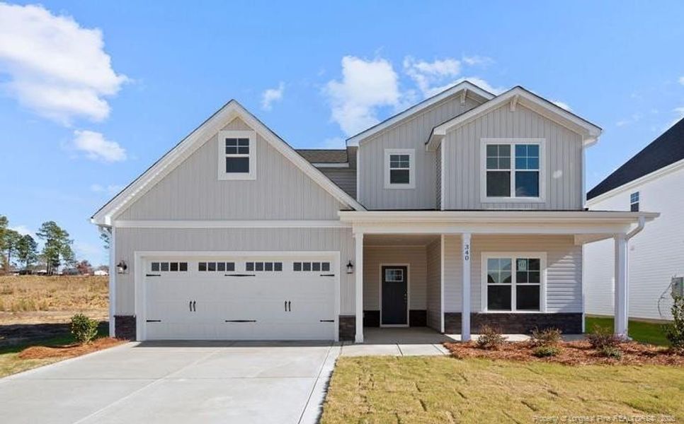 Ben Stout Construction presents The Cape Fear floorplan, blending bespoke elegance and modern living. The fireplace anchors the spacious family room, while the large kitchen island invites gathering. An informal dining room offers space to linger or access the covered porch and enjoy the outdoors. The first-floor primary suite features an ensuite with dual sinks and a large walk-in closet. This floor also includes a second bedroom, full bath, and laundry. Upstairs, two more bedrooms with walk-in closets, a full bath, extra storage, and a large loft complete the home. Continuing the appeal, Bedford Highlands in Raeford is a gated community in Hoke County offering comfort and amenities. Children attend Upchurch Elementary, East Hoke Middle, and Hoke County High. The neighborhood includes a clubhouse, swimming pool, fitness center, and walking areas, making it ideal for relaxed living with plenty of recreation. Located near shopping, dining, hospitals, golf and Fort Bragg (approximately 30-minutes). Estimated completion February 2026. Welcome Home!