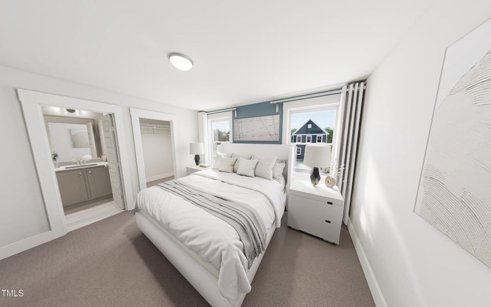 Ascend upstairs to discover a primary suite that awaits at the top of the stairs. It features a spa-inspired walk-in shower, roomy closet, and a tranquil retreat to end your day. Two additional bedrooms, an intelligently located laundry closet (washer/dryer ready!), and a full bath round out the second-story—designed for household harmony