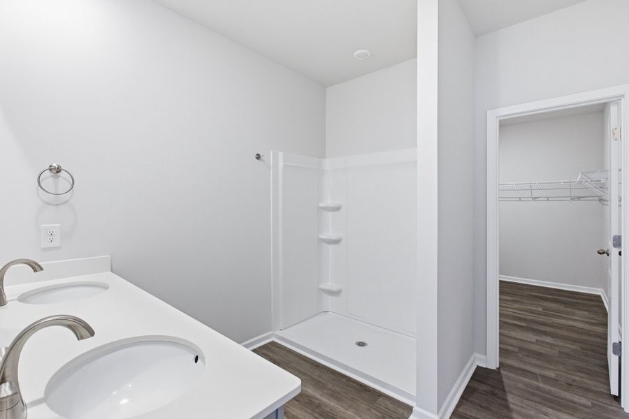 Step into your next home! The inviting Retreat floor plan offers a perfect blend of comfort and functionality across 1,504 square feet. As you enter, a welcoming foyer leads to two generously sized secondary bedrooms that share a full bathroom, providing ideal space for family or guests. The heart of the home opens to an airy, open-concept living area where the spacious family room flows seamlessly into the well-appointed kitchen. The kitchen boasts a large island, perfect for casual dining and entertaining, while the adjacent dining area offers direct access to a covered patio, extending your living space outdoors. The private primary suite is tucked toward the rear of the home for added privacy, featuring a spacious bedroom designed for relaxation. The luxurious primary bathroom includes dual sinks and a walk-in shower, complemented by an expansive walk-in closet. A unique convenience is the direct connection from the primary suite to the laundry room, making everyday tasks easier. This 3-bedroom, 2-bathroom home also includes a two-car garage, making it an ideal choice for modern living with thoughtful flow and practical design.