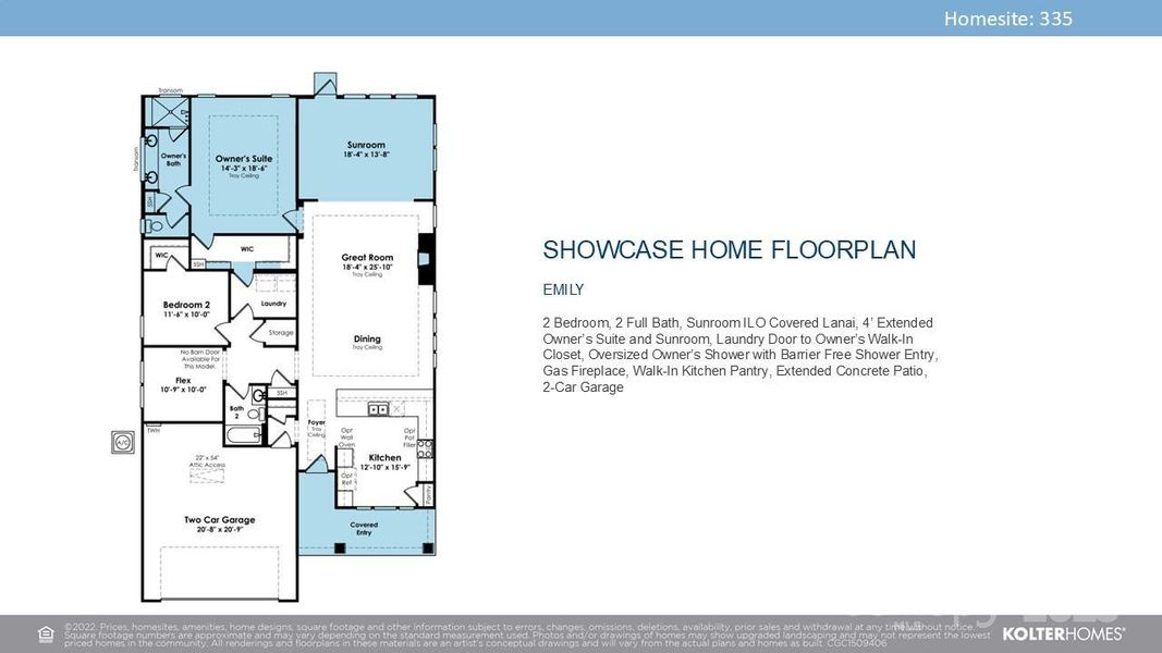 NEW CONSTRUCTIONModel photos used for reference. This thoughtfully designed Emily floorplan offers 2-Bedroom, 2-Bath, Sunroom, Flex Room, and 2-Car Garage. This home offers extended living spaces in both the Owner’s Suite and Sunroom. Located in a gated community near nature trails and an Amenity Center, it features a gourmet kitchen with premium appliances, quartz finishes, and a farmhouse sink. The sunroom opens to an extended patio, perfect for entertaining. Additional touches include a gas fireplace, luxury flooring, and a barrier-free walk-in shower. A laundry room with direct access to the walk-in closet and a two-car garage complete the picture of comfort and convenience.