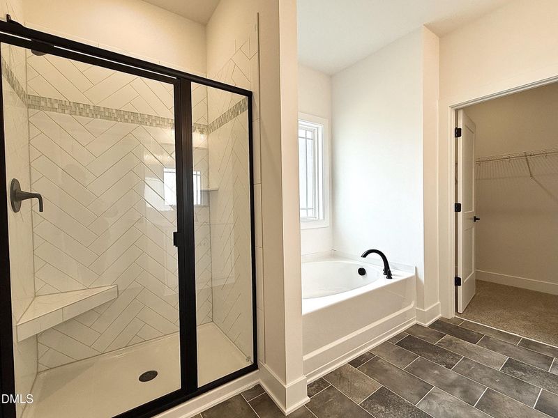 The primary suite is a true retreat, featuring tray ceilings, crown molding, a spacious walk-in closet, and a spa-inspired bathroom with a walk-in ceramic tile shower, soaking tub, dual sinks with cultured marble countertops, and a private water closet.