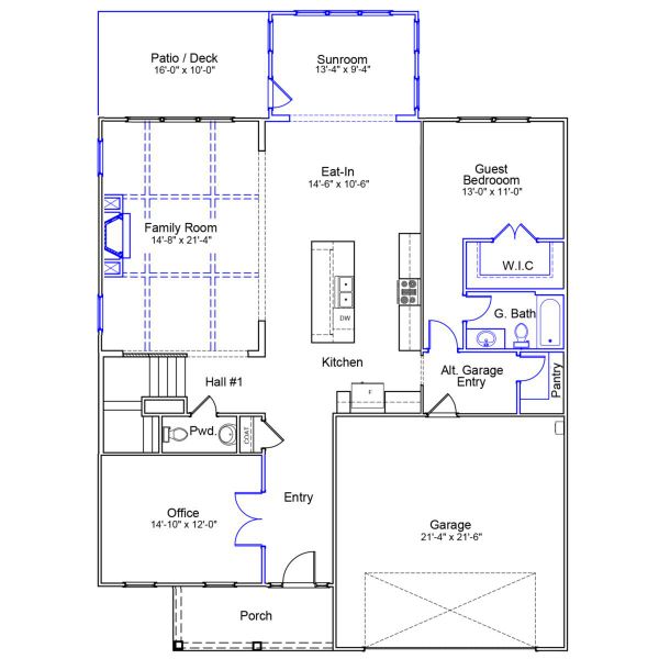 This thoughtfully designed two story home offers spacious living areas and refined comfort for everyday life. A welcoming front porch leads into a well-defined foyer with a private home office ideal for work or study. The open great room flows seamlessly into the eat in kitchen, featuring a large island, ample counter space, and a walk-in pantry—perfect for daily living and entertaining. A light filled sunroom extends the main living space and opens to an outdoor patio for effortless indoor-outdoor living. A first-floor guest bedroom with a walk in closet and full bath provides comfort and privacy, while a powder room, alternate garage entry, and two car garage add convenience.