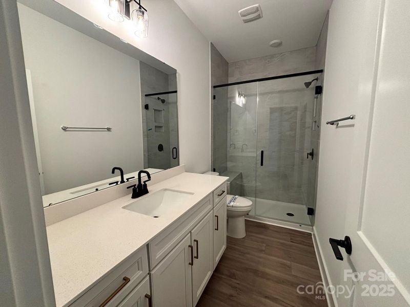 Brand new, boutique community in ideal location minutes to historic Mooresville and Davidson. Less than three miles from I-77 and close to shopping, dining and other conveniences. This gorgeous ranch-style Stanley floorplan includes an upper floor with loft, bedroom and bath. This plan features an open kitchen with breakfast area that leads into the family room. The kitchen includes quartz countertops and stainless appliances, including a gas cooktop and designer range hood. Primary bedroom on the main features tray ceiling and primary bath includes a shower with a bench seat and two separate vanity sinks. The main floor also includes two additional bedrooms, a second full bath, laundry room and mud room! Exciting features include a gas fireplace with marble surround in the living room, upgraded cabinets, farmhouse sink, and more! Enjoy the outdoors on the rear 12x15 patio! Community features nearby nature trails and includes lawn maintenance.