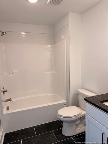 Welcome to the Serenity by JK Builders - a thoughtfully designed new construction home in the desirable Wood Lake II community of Hoke County.This two-story plan offers approximately 2,100 square feet of stylish and functional living space. Upstairs, you'll find three spacious bedrooms—each with its own private bathroom, including a well-appointed owner's suite featuring a tiled walk-in shower and dual vanities. A convenient upstairs laundry room adds everyday practicality.The main level is open and inviting, with 9-foot ceilings and a generous great room that flows seamlessly into the kitchen. The kitchen is finished with white cabinetry and granite countertops throughout.Durable LVP flooring spans the downstairs living areas and laundry room, while tile accents the bathrooms and cozy carpet adds comfort in each bedroom.Enjoy modern living in a growing community with easy access to local amenities.