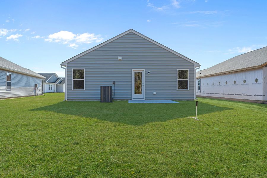 Welcome to this thoughtfully designed 1,265 sq. ft. single-story home offering the perfect blend of comfort, style, and low-maintenance living. This inviting residence features 3 bedrooms and 2 full bathrooms, including a spacious primary suite with a double-vanity bathroom and a walk-in closet for added convenience.The open-concept layout seamlessly connects the kitchen, dining, and living areas—ideal for everyday living and effortless entertaining. The home’s efficient floor plan maximizes every square foot, providing a bright and welcoming environment that feels both cozy and modern.Enjoy outdoor living with a paved backyard patio overlooking ample green space—perfect for play or relaxation—as well as a covered front porch that adds charm and curb appeal. Additional features include a 1-car garage and well-designed interior spaces that make this home an excellent choice for those seeking comfort without compromise. Whether you're a first-time buyer, downsizing, or simply looking for an easy-to-maintain home with contemporary amenities, this property checks all the boxes.*Some photos have been virtually staged for illustrative purposes. Digital furnishings and enhancements have been added to showcase the home’s potential and are not included with the sale of the property.