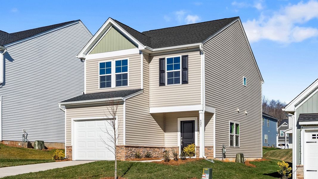 This two-story Bartow plan features three bedrooms and two-and-one-half bathrooms, thoughtfully designed for comfort and functionality. As you step through the front door, you are welcomed by a charming eat-in area that flows seamlessly into the kitchen and spacious great room, ideal for both everyday living and entertaining. Upstairs, the conveniently located laundry area sits at the top of the stairs, along with hallway storage and linen closets for added organization. The primary bedroom is tucked away at the rear of the home and includes a walk-in closet and a private ensuite bathroom, while two additional bedrooms are located at the front of the home near the second full bathroom. Hanes Lake community offers community pool, playground, and has lake access right in the community, located near all your local favorites!