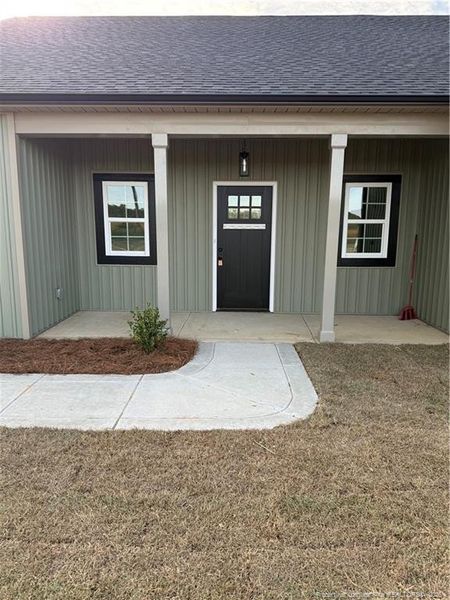 Builder is offering $5,000.00 in buyer concessions with an accepted offer to use as they choose. Be sure to take advantage of a 1% lender credit on the loan amount when financing through preferred lender Christy Strickland with Atlantic Bay Mortgage (910-574-2105). Welcome to this beautifully designed 3 bedroom, 2 bathroom ranch home situated on a spacious 0.86 acre lot, perfect for enjoying quality time with family and friends. Step in the welcoming foyer that leads to a large kitchen featuring stainless steel appliances, granite countertops, a generous island, and a walk-in pantry for all your small kitchen appliances and more. The open-concept layout flows seamlessly into the dining area and family room, complete with an electric fireplace that adds cozy ambiance. The private master suite offers a spacious walk-in closet, dual vanities, linen closet, walk in shower, and a separate water closet. Two additional bedrooms share a full bath, ideal for family or guests. Laundry area is conveniently located right inside the attached two car garage with a drop zone area. Enjoy the outdoors year-round from the covered front porch or relax on the covered back patio ideal for entertaining or quiet morning coffee.