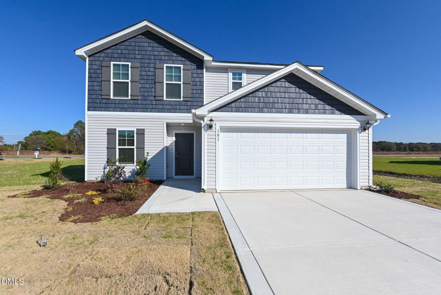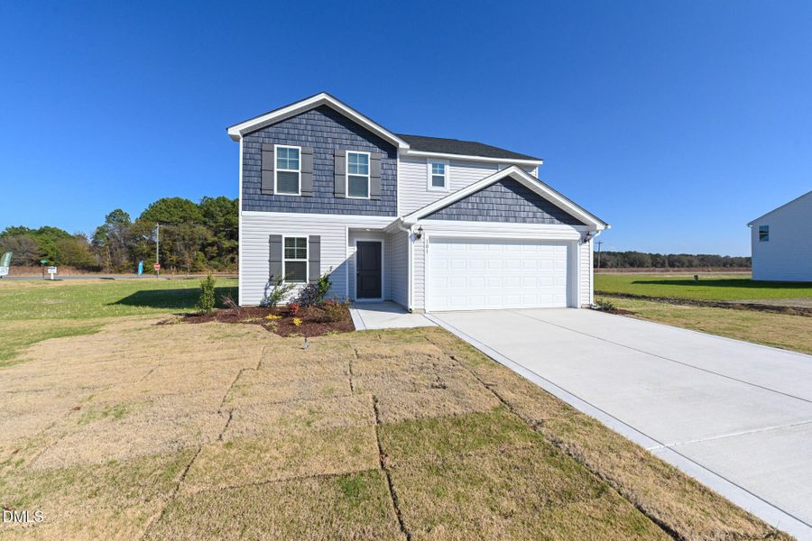 Construction - an exceptional new construction home in the brand-new Lyon Estates community in La Grange, NC. Located just 10 minutes from Seymour Johnson Air Force Base, this 4-bedroom, 2.5-bath home features a spacious recreation room, plus a main-floor flex space ideal for a a home office, gym, or playroom. The expansive owner's suite, contemporary finishes, generous backyard patio, and a 0.52+ acre lot offer the perfect setting for both relaxed
