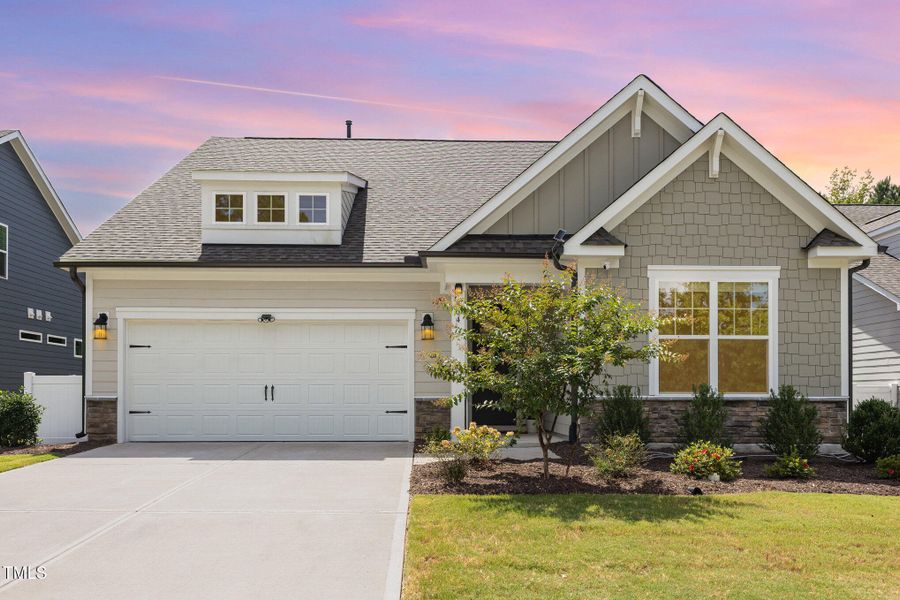 The light-filled primary suite includes an oversized walk-in shower, a spacious walk-in closet, and thoughtful design touches that make it feel like a retreat. Two additional bedrooms and two-and-a-half baths provide plenty of space for family or guests. A two-car garage with finished epoxy floor and smart, low-maintenance features make daily living a breeze.