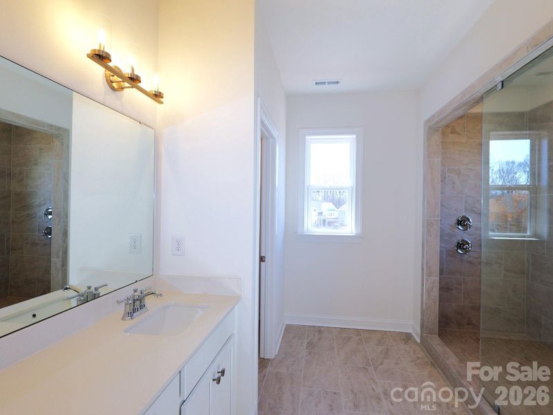 Welcome to the Wilson! Walking in from your front covered porch you are greeted with an inviting and homey foyer. Off to one side is a formal dining room with a tray ceiling and on the other side is a main level guest bedroom with a shared full bathroom. The home opens up to the kitchen, breakfast area and family room. The kitchen is equipped with stainless steel appliances, gas cooktop, overhead exhaust hood and kitchen island. The family room has plenty of natural lighting and a gas fireplace for those colder nights. Walking through the atrium door you'll find a covered extended porch, ideal for entertaining or enjoying a morning coffee. You'll notice throughout the main living areas and dining room is easily maintainable EVP flooring as well as 5" crown molding. Upstairs you'll find 3 additional bedrooms, one with its own private bathroom, a shared bathroom, a spacious bonus room and your laundry room, complete with a laundry tub and cabinets. Walk through the double doors and you'll enter the owner's suite. Fit for royalty, this suite is accented with a tray ceiling, LED lighting and 5" crown molding. With enough room to fit a king size bed as well as other furniture, you may find it difficult to leave bed in the morning! The ensuite is fit for a spa, with an extended tiled shower housing multiple shower heads, a bench and a seperate drying area. The dual vanity allows for enough space to get ready in the morning and the separate toilet area provides maximum privacy. Welcome to your new home!