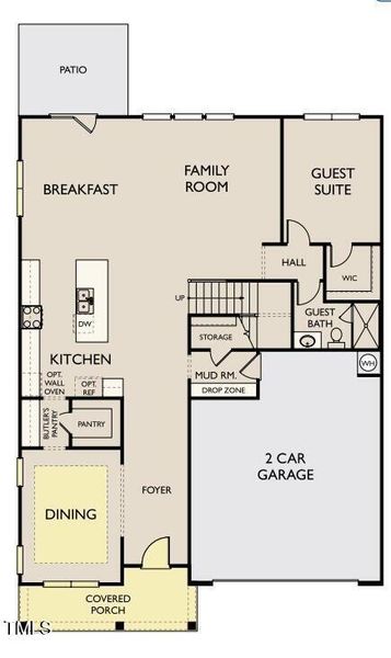 The main floor welcomes you with an open-concept design that connects the kitchen, dining area, and family room, creating a bright and inviting space for everyday living and entertaining. A guest bedroom with a full bath on the first floor provides a private and comfortable space for visitors. The kitchen features abundant counter space, a walk-in pantry, and a large center island that anchors the heart of the home.