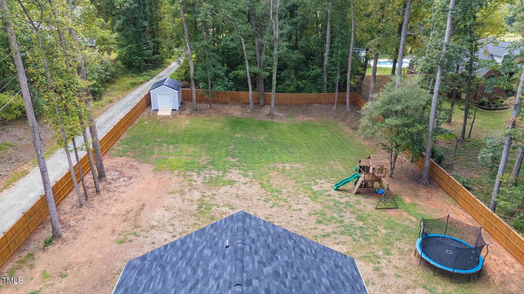 Step outside to find a beautifully upgraded backyard space featuring: 12x16 a utility shed, tall cedar privacy fence, ample parking, and a swingset & trampoline—perfect for your backyard oasis!
