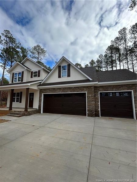 Beautiful 3 bedroom 2.5 bath home WITH finished bonus room AND STUDY! Nestled in the lovely Deercroft Gated Golf and Lake Community! Open floor plan perfect for entertaining with elevated finishes. Precision Construction and Restoration proudly offers stunning countertops throughout, stainless steel appliances and tile backsplash in the kitchen also boasting an island for additional countertop space. Primary bath features a large tile shower, separate soaking tub and dual vanities. You will feel the difference with the elevated finishes in this one! Enjoy the brisk fall evenings on your covered back deck and all of the additional storage of a third garage! Deercroft Clubhouse with pool, playground, courts and lake amenities! Easy commute to Ft Bragg and Southern Pines! .5% with use of preferred lender, Jeremy White, Southern Trust Mortgage.