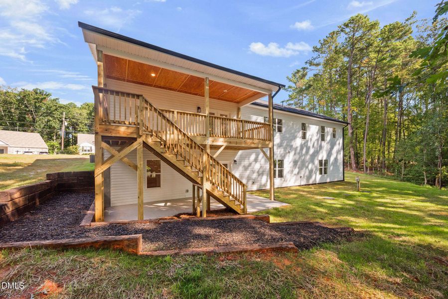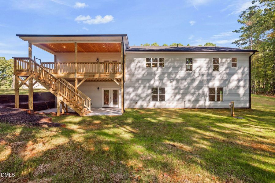 The owner's suite features an oversized tile shower, water closet, and a spacious walk-in closet with custom wood shelving. Additional highlights include a bright laundry room with cabinetry and counter space, and a convenient drop zone. Head downstairs to the lower level which is a blank slate ready for your vision. You'll find plumbing for a future bar or kitchen, space for an additional room, a full bath, and French doors leading to the patio. Game room, movie theatre, crafting, play room, homeschool, home gym - the possibilities are endless! Outdoor features include raised garden beds and a septic layout that allows room for a future pool and an extra driveway for your camper, boat, or recreational vehicles. This is a recreational community and you can store these items in plain sight right on your property! The painted and trimmed garage includes a storage closet, insulated garage door, and tankless water heater, while the extended driveway offers ample parking. This home is located in ''The River'' aka Lake Royale Golf Community and just a short walk to the pro shop and restaurant. A free River Golf Course membership for two is included in your annual POA dues. Lake Royale is a vacation-style community with a 3.5-mile lake, two beaches, boat ramps, clubhouse, pool, tennis & pickleball, volleyball, basketball, mini golf, shuffleboard, campsites, comfort centers, and free River Golf Course membership. The events committee provides a full calendar including food trucks, concerts, bingo, karaoke, movies on the beach, and 4th of July fireworks—you'll never run out of things to do!