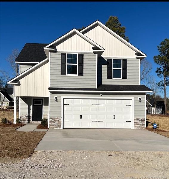 Welcome to this stunning new construction home featuring 3 beds 2.5 bathrooms and a large upstairs loft-perfect for a second living area, home office or playroom. Step into the inviting foyer that opens to a spacious great room with cozy fireplace~ ideal for relaxing or entertaining. The kitchen features white cabinets with granite countertops, a center island and SS appliances: microwave, dishwasher and range. Enjoy meals in the eat-in dining area. All bedrooms are located upstairs, along with a convenient second-floor laundry room. The primary suite features a bathroom with separate tub and walk-in shower, double vanity and private water closet. This home is perfect for entertaining with its open layout and spacious design. Located just 15 minutes from Aberdeen, shopping, dinning and entertainment. Plank Road is ~2.5 miles away making access to Fort Liberty and Fayetteville convenient. NO HOA, NO restrictions, NO CITY TAXES. Listing agent is related to seller.