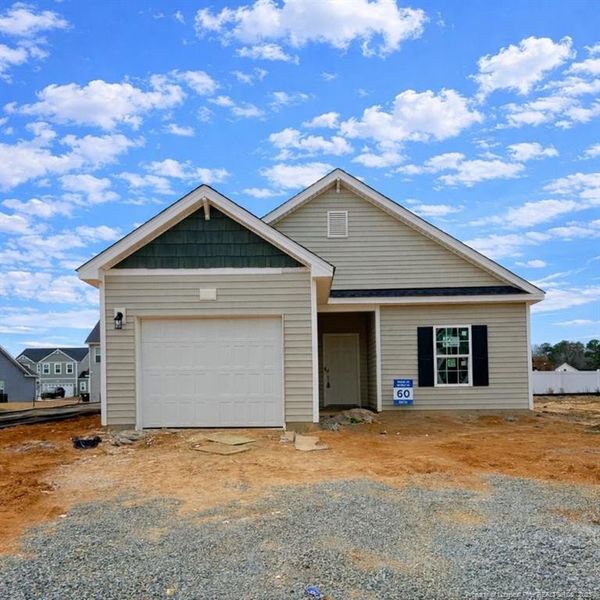 The Hargrove is a charming ranch-style home offers easy, single-level living with a welcoming foyer, open-concept kitchen,dining, and great room. The kitchen features white shaker cabinets, "New Caledonia" granite countertops, a corner pantry, a center island with sink overlooking the great room, and stainless-steel appliances-including a microwave, dishwasher, and smooth-top range-flowing seamlessly into the dining area, ideal for daily meals or entertaining.The great room opens to a grill patio for seamless indoor/outdoor living. The private primary suite is a restful retreat, while the ensuite bathroom offers a dual quartz sink vanity, a walk-in shower,a linen closet, and access to a spacious walk-in closet Two additional bedrooms off the foyer share a full hall bathroom with a vanity and tub/shower combo. A separate laundry room with washer/dryer connections and a linen closet adds convenience. Garage access off foyer with a coat closet nearby. Exterior highlights include low-maintenance vinyl siding, shake accents, dimensional roof shingles, smart keypad entry, and a 1-car garage. Additional features include fiber optic internet availability, Energy Plus certification, and a 1-2-10 builder in-house warranty. Brookstone Village is a gated community off HWY 401 in Raeford, close to shops and dining, with a walking trail, a dog park, and a community grill area. $10,000 in buyer incentives when you use the builder's preferred Lender, First Point PLUS blinds & standard refrigerator!