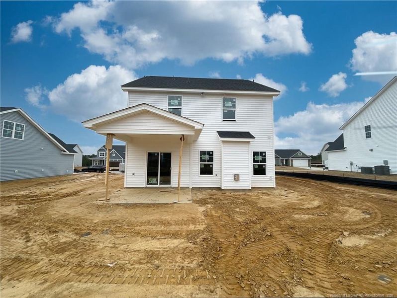 Onslow CC1885 "F" 3BR/2.5BA Energy Plus Home with 1885SF! Main Level Features: Kitchen with stainless steel appliances (Gas Range, Microwave over range, dishwasher). Quartz Countertops with bar seating and sink overlooking Great room. Dining Room with sliding glass door access to rear covered porch. Great room with ceiling fan and Gas log fireplace. Half Bath. Upper Level: Large Primary Bedroom with ceiling fan and walk-in closet. Primary Bath with dual vanity, quartz countertops, walk-in shower, private water closet and an additional walk-in closet. 2 additional bedrooms. Hall full bath with tub/shower combination & linen closet. Laundry Room. 2 Car Garage, Security System. Professional Landscaping. Community Pool House, Pool and Playground. Please note: Illustrations are artists depictions only and may differ from completed improvements.