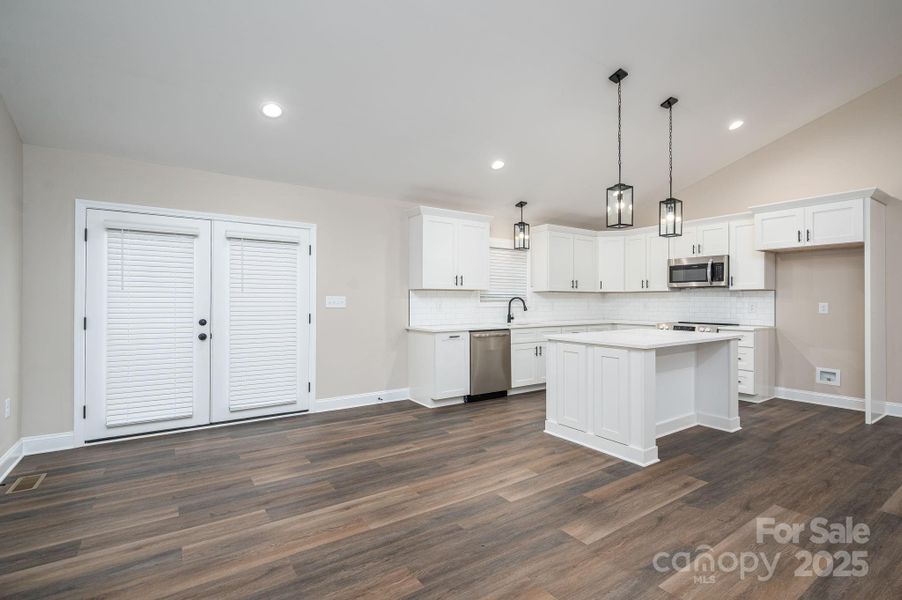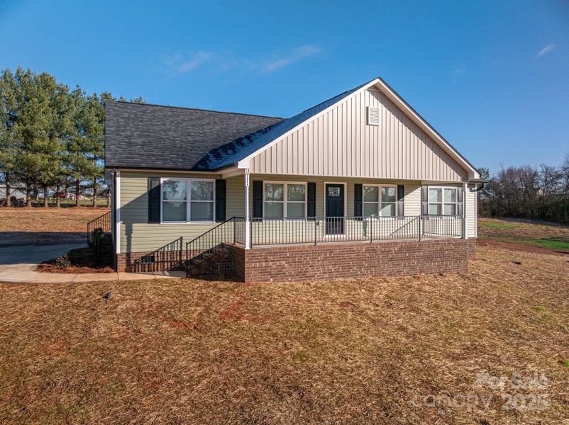 Welcome to your brand-new home on a spacious one-acre lot at 2984 W Hwy 27! This thoughtfully designed 3-bedroom, 2-bathroom new construction blends modern style with everyday comfort. A 30’ x 8’ gable front porch invites you to enjoy quiet mornings, while the 10’ x 16’ concrete patio out back is perfect for cookouts and gatherings. Inside, the open-concept layout showcases vaulted ceilings in the living, dining, and kitchen areas, filling the home with natural light and a welcoming atmosphere. Throughout, you’ll find durable luxury vinyl plank flooring, combining style with easy maintenance. The kitchen stands out with white shaker cabinetry, quartz countertops, and a designer tile backsplash. The guest bathroom includes a 48” vanity and tub, while the owner’s suite offers a private retreat with a double vanity, linen closet, beautifully tiled shower, and walk-in closet. With stylish finishes, a functional floor plan, and a peaceful setting, this new home is designed for modern living—all within 10 minutes of downtown Lincolnton, 30 minutes to Hickory, and under an hour to Charlotte Douglas International Airport.