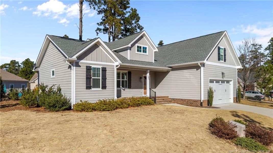 PRICE IMPROVEMENT! Seller now offering $5000 towards closing costs with full price offer. Don't miss this one! Check out this spacious and beautifully maintained 4-bedroom, 3-bathroom home showcases a desirable split floorplan with an additional private bedroom and full bath upstairs. Inside, you'll appreciate the low-maintenance LVP flooring throughout—no carpet—and gorgeous tile in all bathrooms. The main living area feels bright and inviting, highlighted by a trey ceiling, plantation shutters, and abundant natural light.The primary suite is a true show stopper, featuring a spa-like shower and a generous walk-in closet. The kitchen is well-appointed with stainless steel appliances (including gas range), an island with additional seating, and a pantry—perfect for all your cooking and entertaining needs. For added convenience, the washer and dryer convey with the home.Outdoor living is just as appealing with a welcoming covered front porch and a rear patio, ideal for entertaining or relaxing. The easy-care yard includes an irrigation system, so you can spend more time enjoying your home than maintaining it. Seller has invested in landscaping which will provide added privacy as well! The neighborhood is designed for lifestyle and leisure, with sidewalks perfect for evening strolls and a community pool just a short walk away. Conveniently located near world-class golf courses, shopping, and restaurants— all a part of what Southern Pines and Pinehurst have to offer—this home is the perfect blend of comfort, style, and location.