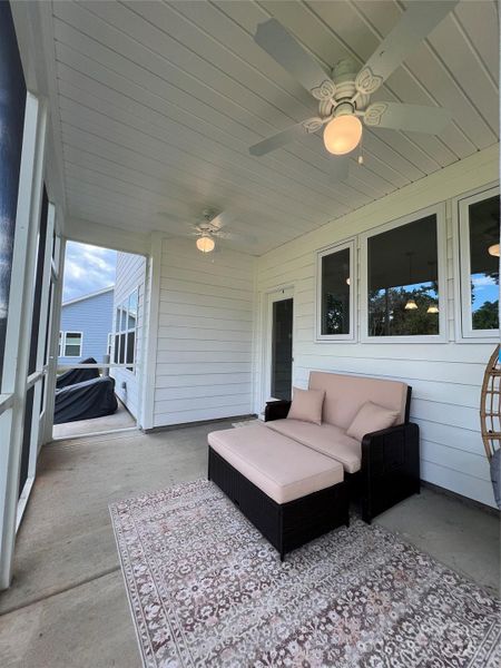 Enjoy the outdoors year-round with a screened-in back porch and extended patio overlooking the fairway—ideal for morning coffee or evening gatherings.