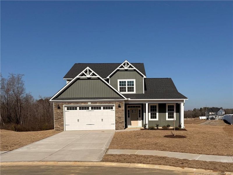 Welcome to the CC2876 Plan, built by trusted builder, Caviness Land! Brand New Construction in Gated Community! Limited Time Buyer Incentives being offered! LIMITED TIME BUYER INCENTIVES INCLUDE: $10,000 BUYER INCENTIVE! - Use as YOU Choose! Can be used for Closing Costs, or Builder Provided Fence, Blinds, Fridge, Washer, or Dryer! Take advantage of this great opportunity!Welcome home to Brookstone Village, a gated community offering the perfect blend of comfort, convenience, and style. Ideally located just a short commute to Fort Bragg and Fayetteville, this neighborhood will offer amenities including sidewalks and street lights, a jogging trail with fountains, dog park, and a fun-filled ''Tot Lot'' playground for the little ones.This beautiful 2-story home showcases elegant stone accents and offers 2,876 sq. ft. of thoughtfully designed living space with 4 bedrooms, 2.5 baths, and a 2-car garage. Inside, you'll find a formal dining room with coffered ceiling and wainscoting, setting the tone for stylish entertaining. The kitchen features Quartz countertops, a breakfast bar, pantry, USB outlet, and opens to the breakfast nook and great room, complete with an electric fireplace for cozy evenings. A light-filled Carolina Room with a cathedral ceiling opens to the covered back porch, perfect for relaxing or entertaining outdoors.The first-floor primary suite boasts a tray ceiling, large walk-in closet, and a spa-like bathroom with double sink vanity and walk-in shower. A spacious mudroom with laundry conveniently connects to the garage. Upstairs, you'll find a large loft, three additional bedrooms, and a full bath, offering plenty of space for everyone.Experience the comfort, amenities, and security of Brookstone Village—where every detail feels like home.