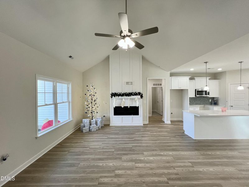MOVE IN READY !! The Hunter Plan is a showstopper with 1,615 sq. ft. of thoughtfully designed space! Step inside to an open-concept layout where a stunning island kitchen steals the spotlight with granite countertops, tile backsplash, stainless steel appliances, and durable laminate flooring. The spacious family room, complete with a cozy fireplace, makes the perfect gathering spot. A private split-bedroom design sets apart the luxurious owner's suite, featuring a soaking tub, separate shower, and oversized walk-in closet. Two additional bedrooms provide plenty of room for family or guests. Outdoor living shines with covered front and back porches—ideal for relaxing or entertaining. Don't miss your chance to own this beautiful home in a sought-after community!