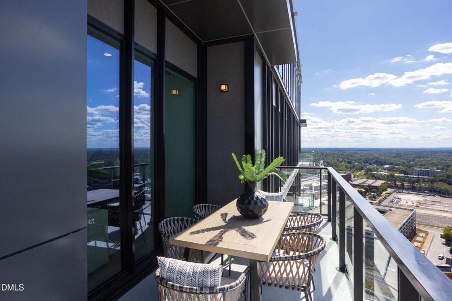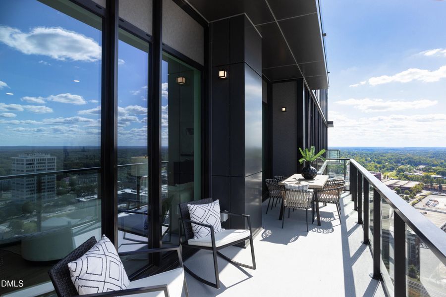 Exceptional opportunity to own a stunningly spacious luxury condominium on the 26th floor, stretching along the western skyline with breathtaking views of Durham's world-class cityscape, Duke University Chapel, and unforgettable sunsets. This residence features a striking marble island that anchors an impressive chef's kitchen, fully outfitted with premium appliances—including a Wolf 6-burner gas range with separate warming drawer, Sub-Zero refrigerator, separate ice maker, refrigerator drawers, wine refrigerator, and Cove dishwasher. The primary suite is a true sanctuary of elegance, offering a Calacatta marble bath with an enclosed wet room—the epitome of luxury and relaxation in your home in the sky. A secondary ensuite bedroom showcases timeless marble and quartzite finishes, while the dedicated laundry room, complete with a sink, provides exceptional convenience.Two deeded parking spaces in a secure garage are included. Residents also enjoy access to an unsurpassed 7th-floor amenities level, featuring a co-working lounge, world-class fitness center, yoga and steam rooms, lap pool, pickleball court, outdoor kitchen, game room, golf simulator and putting green, as well as a dog park for your furry companion.To top it off, owners have exclusive use of a private clubroom on the top floor, offering panoramic views that must be experienced to be believed. A front desk attendant is on hand to brighten your day and assist as needed. This extraordinary residence truly offers everything you need to make your Durham home complete.