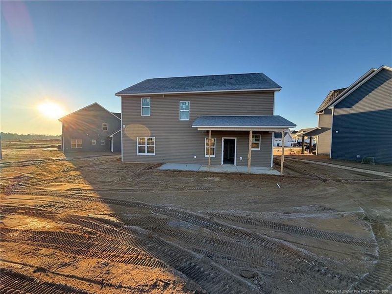 Beautiful 2-story home in Georgetown Estates, located in the highly desired Jack Britt School District, offering nearly 2,700 sq. ft. of heated living space with 4 bedrooms, 2.5 baths, and a 2-car garage perfect for a growing family. As you enter, you’ll appreciate the spacious layout, featuring a large family room with beautiful laminate flooring and an electric fireplace, as well as a formal dining room with a tray ceiling and wainscoting. The kitchen is a standout with granite countertops, stainless steel appliances including an electric range, refrigerator, microwave/hood, and dishwasher a pantry, and ample cabinet space. Just off the kitchen is a convenient laundry room with wall cabinets above the washer and dryer. Upstairs offers a large open media room and a luxurious master suite with a walk-in closet, dual vanities with cultured quartz countertops, a garden tub, and a separate shower. Three additional generously sized bedrooms and a full bath with cultured quartz counters complete the upper level. Outdoor living includes an 8x17 covered rear porch and an 8x12 patio, ideal for entertaining, plus an irrigation system to keep your lawn green and healthy. Built Strong by Armstrong, this home combines comfort, space, and quality craftsmanship in one exceptional package. Estimated completion: March 2025.