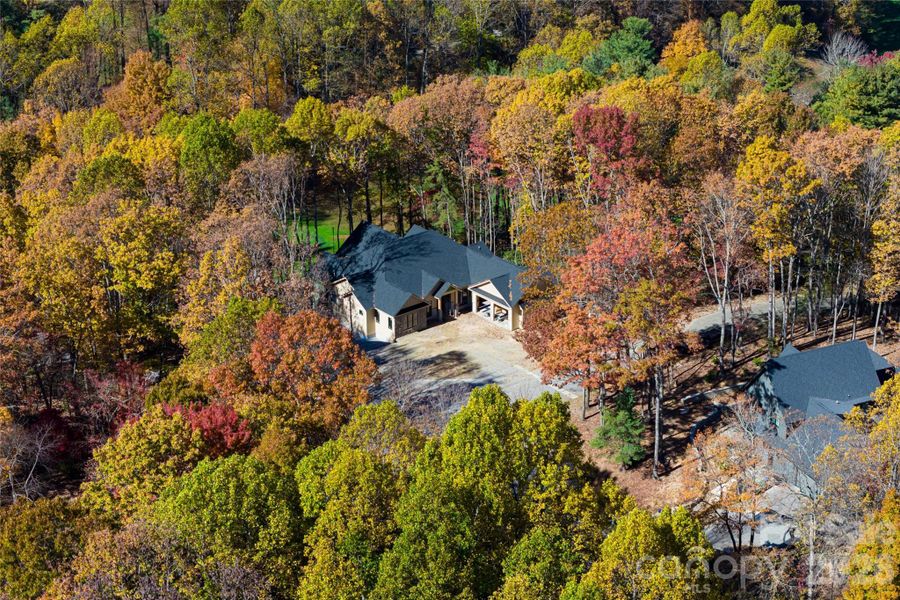 A rare opportunity awaits overlooking the 7th tee of the prestigious Champion Hills golf course. This custom residence is thoughtfully positioned to overlook the golf course and capture the essence of refined mountain living. Designed for effortless main-level living, the home offers 2,855 square feet on the main level and 1,948 square feet on the terrace level, both featuring 10-foot ceilings that create an atmosphere of openness and sophistication. The great room centers around a striking fireplace and connects directly to the chef’s kitchen, equipped with a Thermador appliance package including a 48" gas range and complemented by a scullery for additional prep and walk-in pantry for storage. Two large sliders lead out to the sprawling screened porch which features a wood burning fireplace and provides a perfect setting for relaxed outdoor living and entertaining. A beautiful dining room sits at the corner of the home providing access out to a covered grilling deck. The primary suite is located on the main level and features an oversized tile shower, garden tub, double vanities, and spacious walk-in closet. A large guest bedroom with ensuite bath, private office, and well-designed mud and laundry room complete the main level. The terrace level is ready to entertain with a generous family room complete with fireplace and wet bar, two guest bedrooms with a Jack-and-Jill bath, a wellness room/bedroom with ensuite, and a large covered deck overlooking the golf course. A large, unfinished room is equipped with a golf cart garage providing ideal space for hobbyists or those in need of storage.