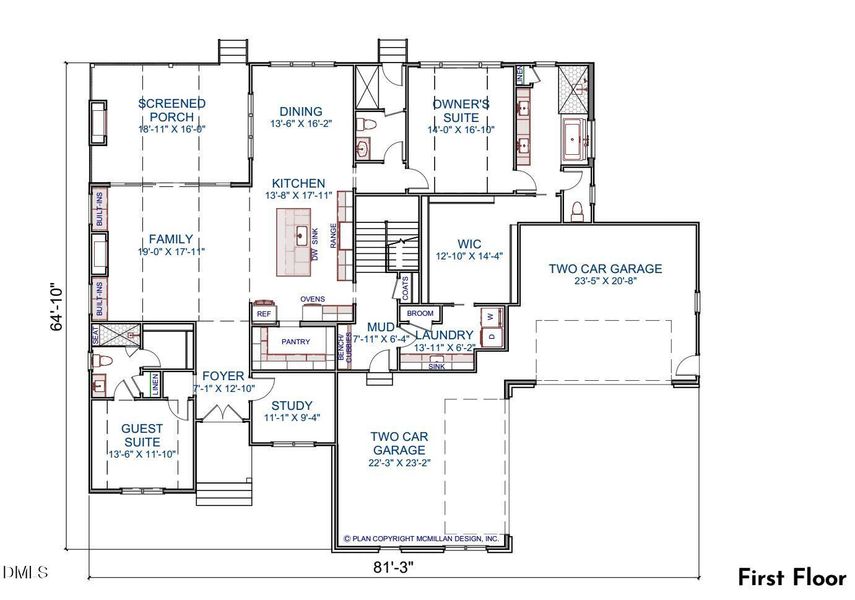 Custom built by award winning Bluestone Builders. Nestled on a private, 1+ acre, pool ready corner home site in Falls Reserve — 4,541 square feet with a RARE 4-car garage! Elegant finishes, upgraded Pella windows, vaulted ceilings and wide plank hardwoods span throughout the main level — with a primary suite, guest suite and dedicated study. Gourmet kitchen: features ''calacatta idillio'' quartz countertops, 3x12 herringbone laid backsplash, ''maple vintage'' natural stained island with quartz-top barstool seating and designer pendants, custom white painted stacked cabinetry with under cabinet lighting, Thermador gourmet appliance package including 36'' gas range, wall oven/microwave, matching stained hood vent and refrigerator and huge scullery/prep kitchen with additional dishwasher! Large informal dining flooded with natural light. Primary suite: offers hardwoods, vaulted ceiling and luxurious en-suite bath with designer tile flooring, ''vintage ash'' stained dual vanity with ''arctic white'' quartz top, freestanding tub and spa-style zero entry shower with 24x48 tile to ceiling and rain shower and walk-in closet with custom built-ins and direct access to the laundry room. Family room: features a vaulted ceiling, granite surround fireplace topped with a custom wood mantle and flanking built-ins and large glass sliders to the screened porch with vaulted tongue & groove ceiling and stone fireplace for outdoor entertaining! Upstairs features a huge recreational room and 3 additional large en-suites! Sealed crawl space, tankless water heater, additional powder room/pool bath, unfinished walk-in storage and so much more!
