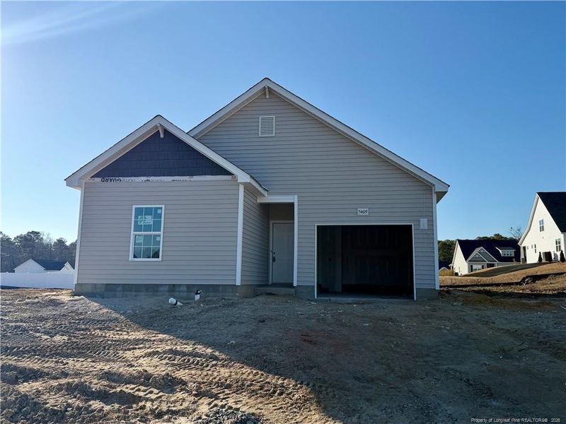 The Murphy is a beautifully designed ranch home featuring 4 bedrooms, offering plenty of space and flexibility. The spacious primary suite is a true retreat, complete with an ensuite bathroom with a dual quartz sink vanity, walk-in shower, and access to the large walk-in closet. Three additional bedrooms share a centrally located full hall bath with a vanity and a tub/shower combo. The open-concept layout connects the kitchen, dining area, and great room, creating a bright and welcoming living space. The kitchen showcases a center island with a sink adding functionality, white shaker cabinets, "Giallo Ornamental" granite countertops, a corner pantry, and stainless-steel appliances including a microwave, dishwasher, and smooth top range. The great room overlooks the backyard and leads directly to the grill patio—ideal for relaxing or entertaining outdoors. Conveniently located laundry room makes household chores easy and accessible.Exterior highlights include low-maintenance vinyl siding with shake accents, dimensional roof shingles, a front door painted in SW "Cast Iron", smart keypad entry, and a 1-car garage. Neighborhood features a community playground, dog park, walking trail, fiber optic internet availability, Energy Plus certification, and a 1-2-10 builder in-house warranty.Elliot Farms is ideally located on Fayetteville's Northside—just 15 minutes from Fort Bragg, 20 from downtown, and within easy reach of Lillington, Raven Rock, and Raleigh. $10,000 builder incentive ($0 closing costs) with First Point OR rate as low as 2.99.
