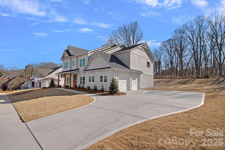 This exquisite custom home in Serenity Woods offers 4 bedrooms, 3.5 baths, and ~3,600 sq ft of luxurious living on a serene 1/2-acre lot. Built well beyond ENERGY STAR 3.2 standards, this all-electric home features dual Trane heat pumps, hot water recirculation pump, induction cooking, electric car charger, and advanced smart wiring throughout. The gourmet Kitchen is a chef’s dream with 2 ovens, 2 dishwashers, 2 fridges, 2 sinks, 36” induction cooktop, huge center island, and walk-in Pantry—with plumbing and power for a future ROBOT. Elegant interior details include soaring 9’ ceilings on both floors, coffered ceiling, 3-piece crown molding, wainscoting, solid interior doors, and custom solid shelving in ALL closets (NO WIRE!). All bedroom closets are full walk-ins, adding unmatched storage and convenience. The luxurious Primary Ensuite features dual vanities, soaking tub, spa-like shower, and a massive walk-in closet. Indoor/outdoor living shines with a collapsible 9’ stacking patio door, professionally landscaped backyard with mature oak and pine trees, front porch with 8x8 rough sawn cedar columns, solid mahogany double doors, and board-and-batten siding with metal roof accents. Serenity Woods is a quiet, 12-home enclave in north Charlotte - just 1.25 miles from I-485, close to Mountain Island and Riverbend Village amenities, and only 15 minutes to Uptown Charlotte. Homes of this craftsmanship are seldom available—schedule your private tour today and experience the difference!